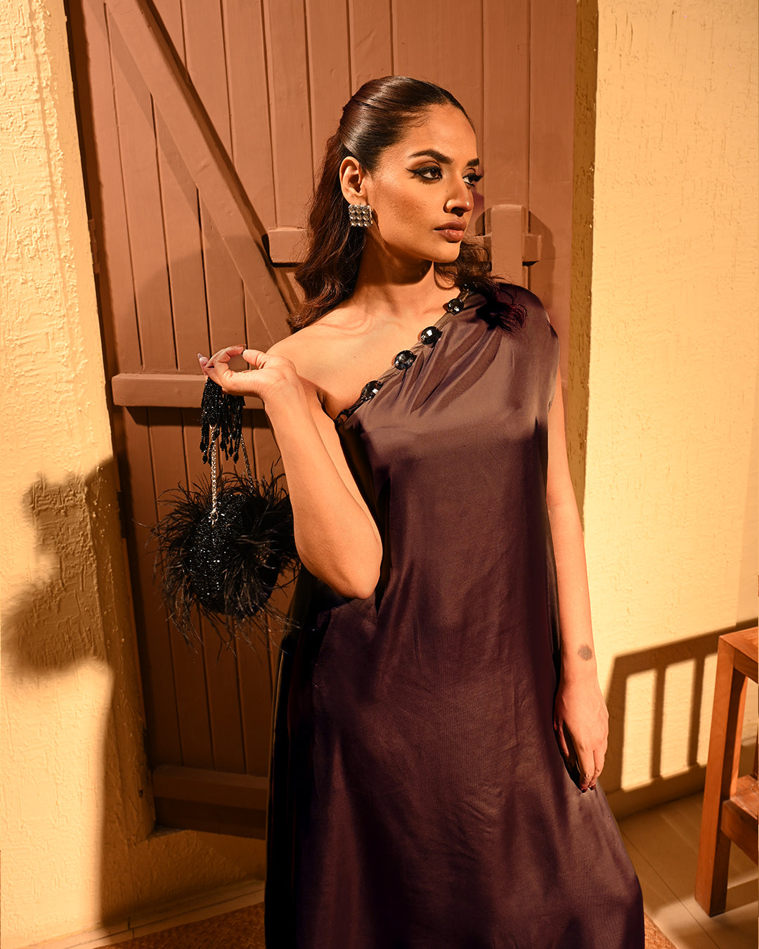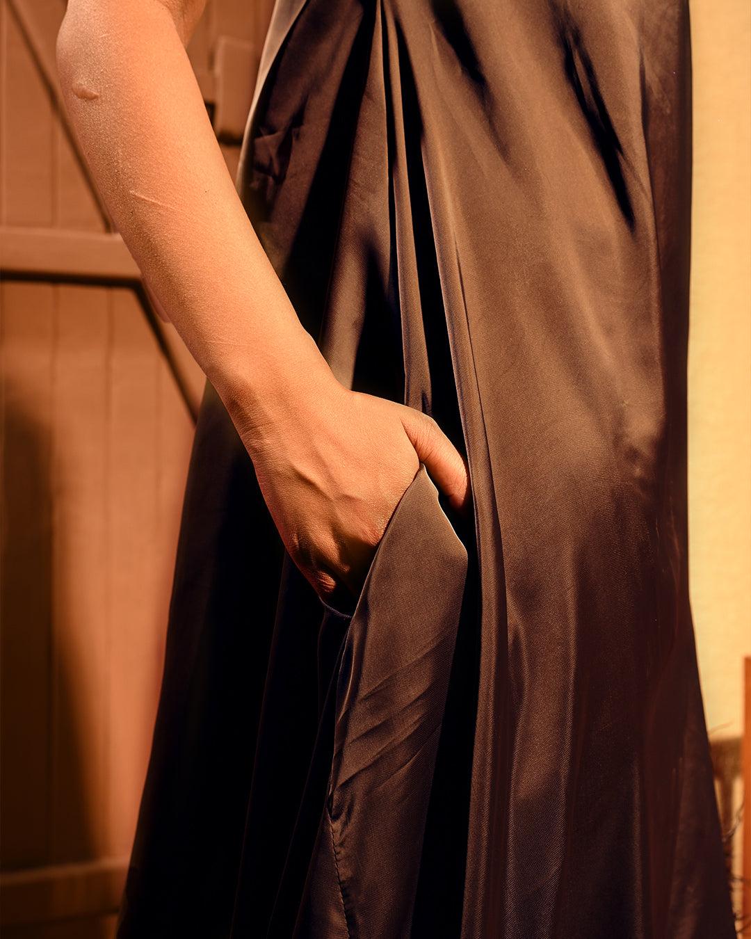 ✔ Crafted in imported Armani satin — luxuriously matte, light weight and flows with dramatic elegance