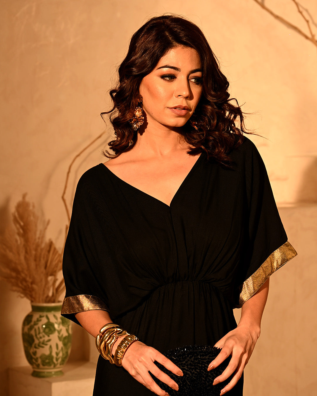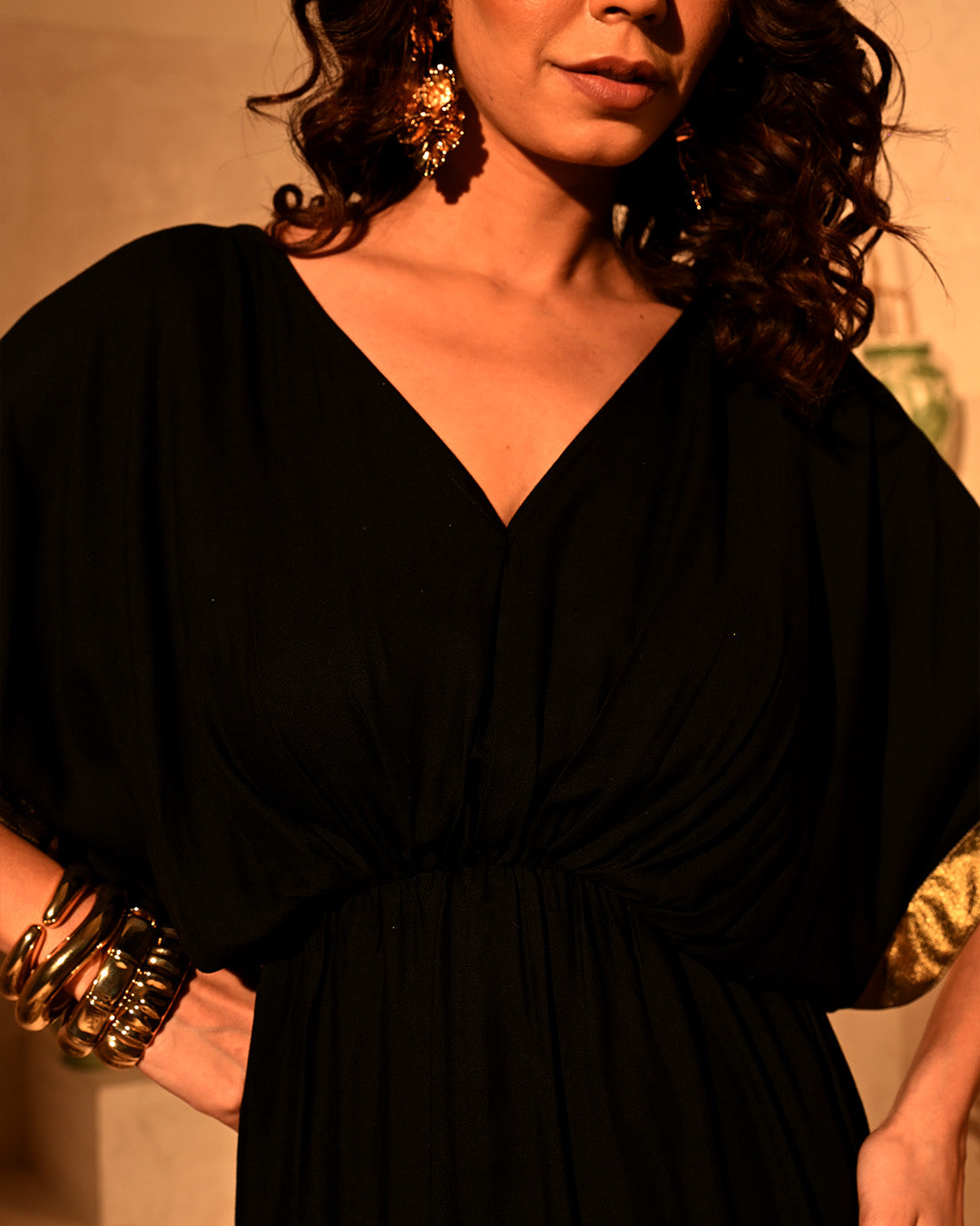 Meet the Flora Foil Drape Dress — a graceful blend of comfort, elegance, and adjustability, wrapped in the signature shimmer of foil print on breathable rayon-cotton. This medium-length beauty features soft fringes at the hem and a flattering elasticated waist that gently defines your shape without clinging to the belly. The gathered detailing adds a touch of charm while keeping the fit comfortable and forgiving. With a draped, flowy torso and adjustable straps, you’re in full control — dial up the neckline for a sultry statement or keep it modest for day events. Whether it’s brunch, a beach evening, or a dinner party, this dress adapts to your vibe effortlessly. It’s that versatile staple your wardrobe will thank you for.
