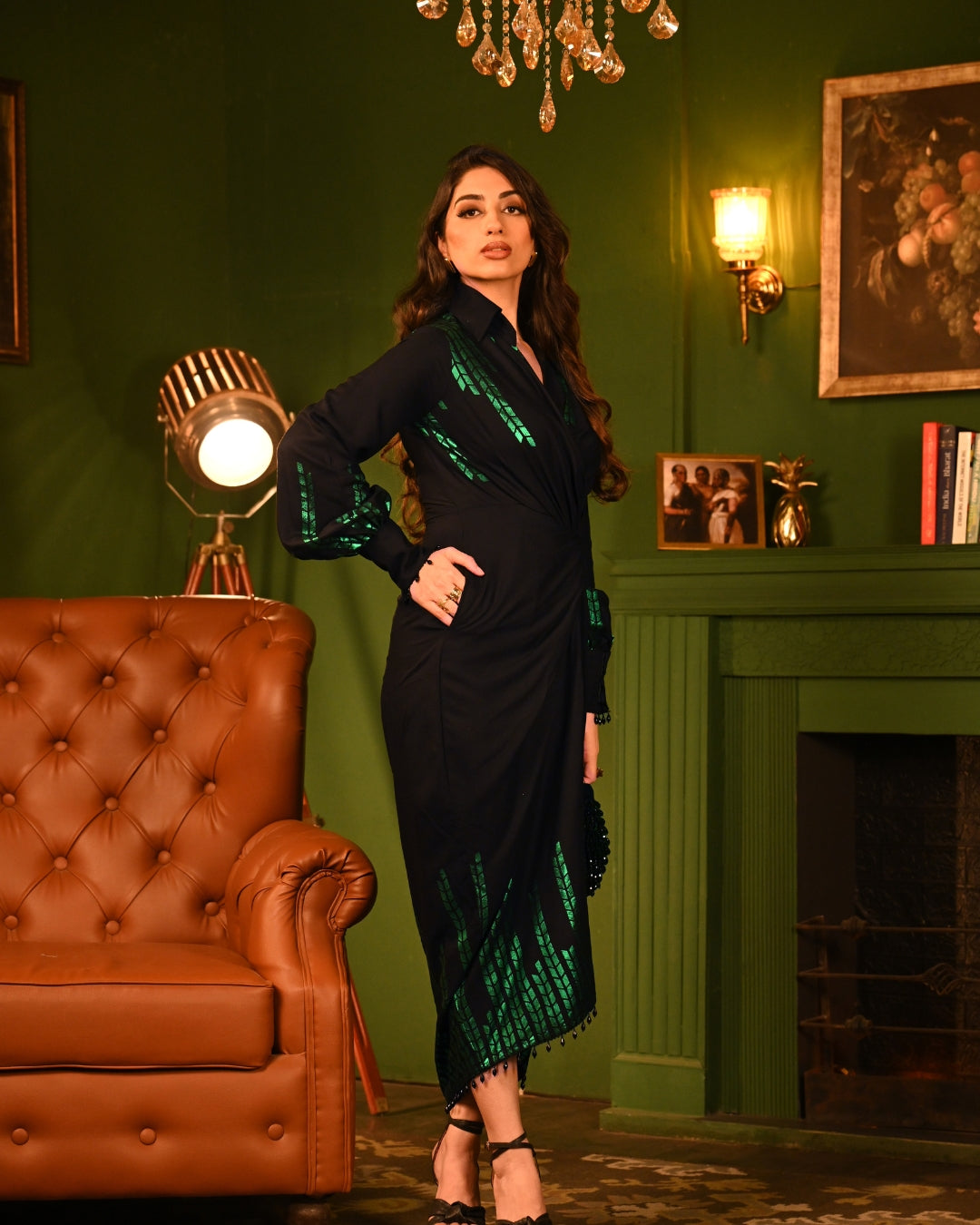 Step into the spotlight with our Green Oak Foil Shirtdress, a bold fusion of power and elegance that reflects your inner strength and beauty. Crafted for the woman who commands attention, this mesmerizing piece drapes you in a luminous green foil print that shimmers with every movement, radiating confidence and allure.This soft rayon fabric flows like a gentle breeze, draping gracefully to enhance every curve. The shimmering foil print adds a glamorous touch, making every outfit shine with effortless sophistication.