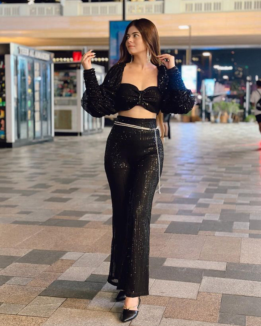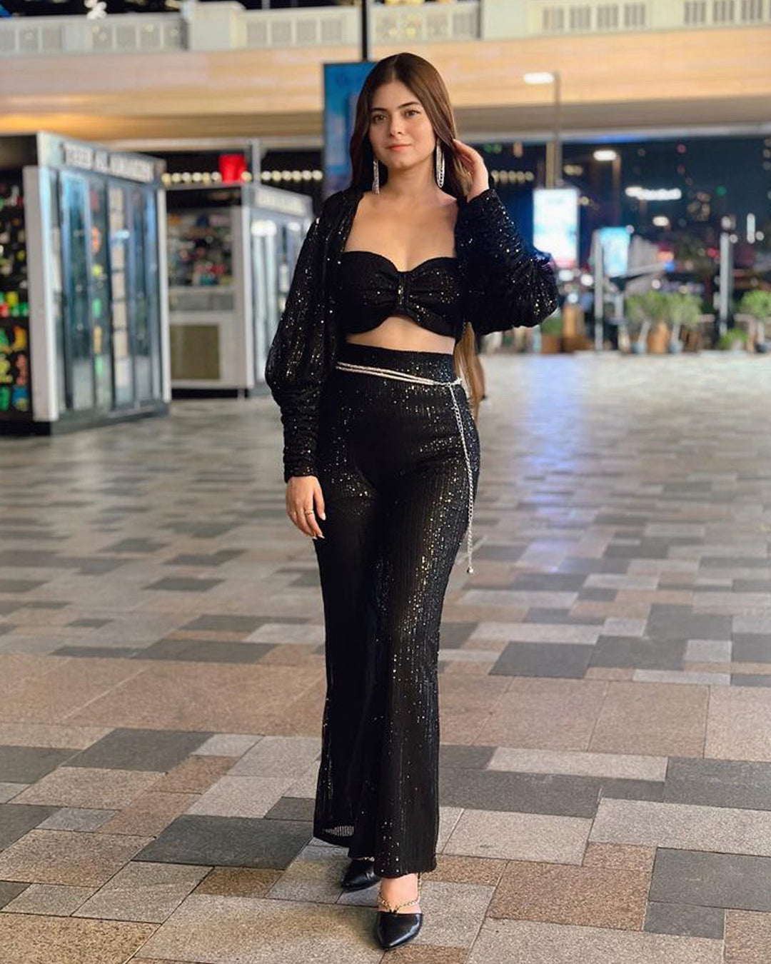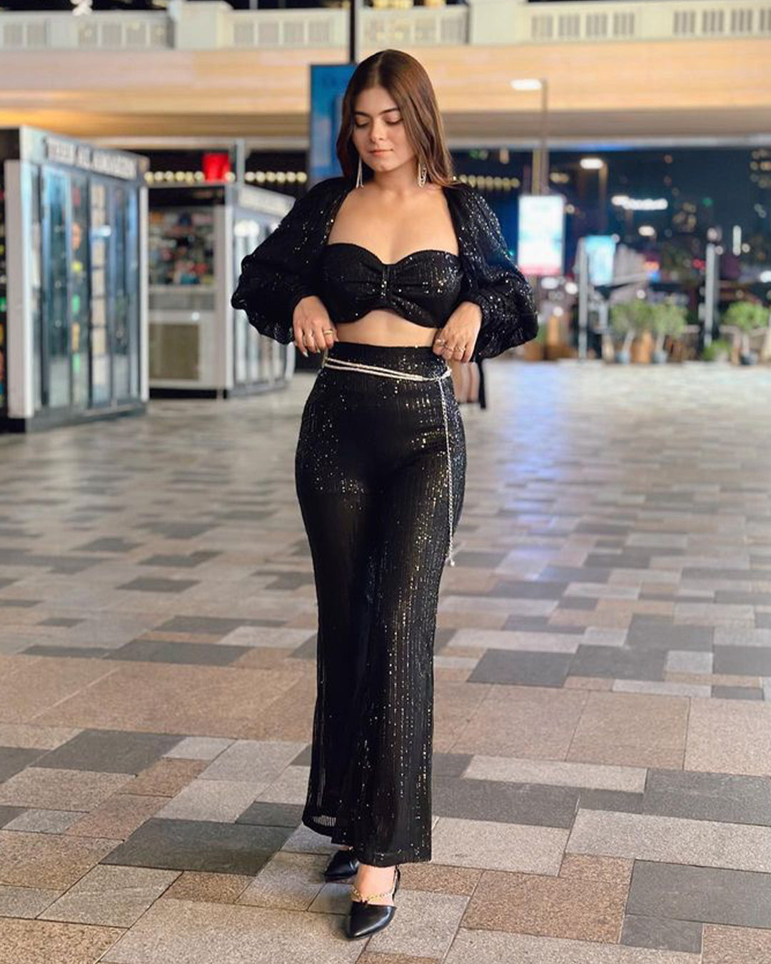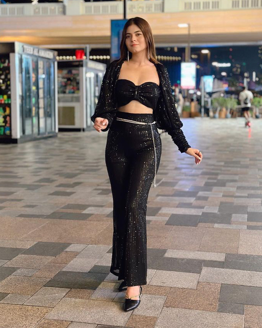 Crafted from high-quality Lycra Sequin fabric, the Lucy Co-ord Set in mesmerizing black adds a touch of glamour to your outfit. The fabric not only exudes opulence but also ensures a comfortable and flattering fit, allowing you to move with confidence and grace.