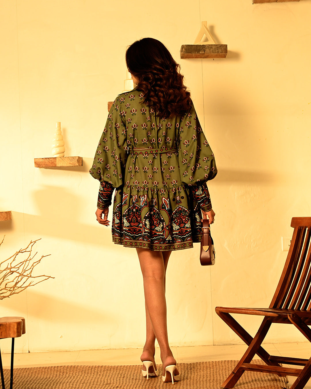 Made from breathable cotton, this shirt-style mini is designed with Indian body types in mind—snatching you right below the bust with its adjustable belt while giving you that easy, flowy fit. The frill hem, unique border print, and matching sleeve detailing add just the right amount of charm. It’s the kind of dress that feels light, looks flattering, and works for everything from brunch to a sundowner. Style it with flats and hoops for day, or go bold with block heels and layered jewelry for the night. Note: The dress may look shorter on the model (6’2”), but it comfortably covers the thighs and sits just above the knees on average heights.