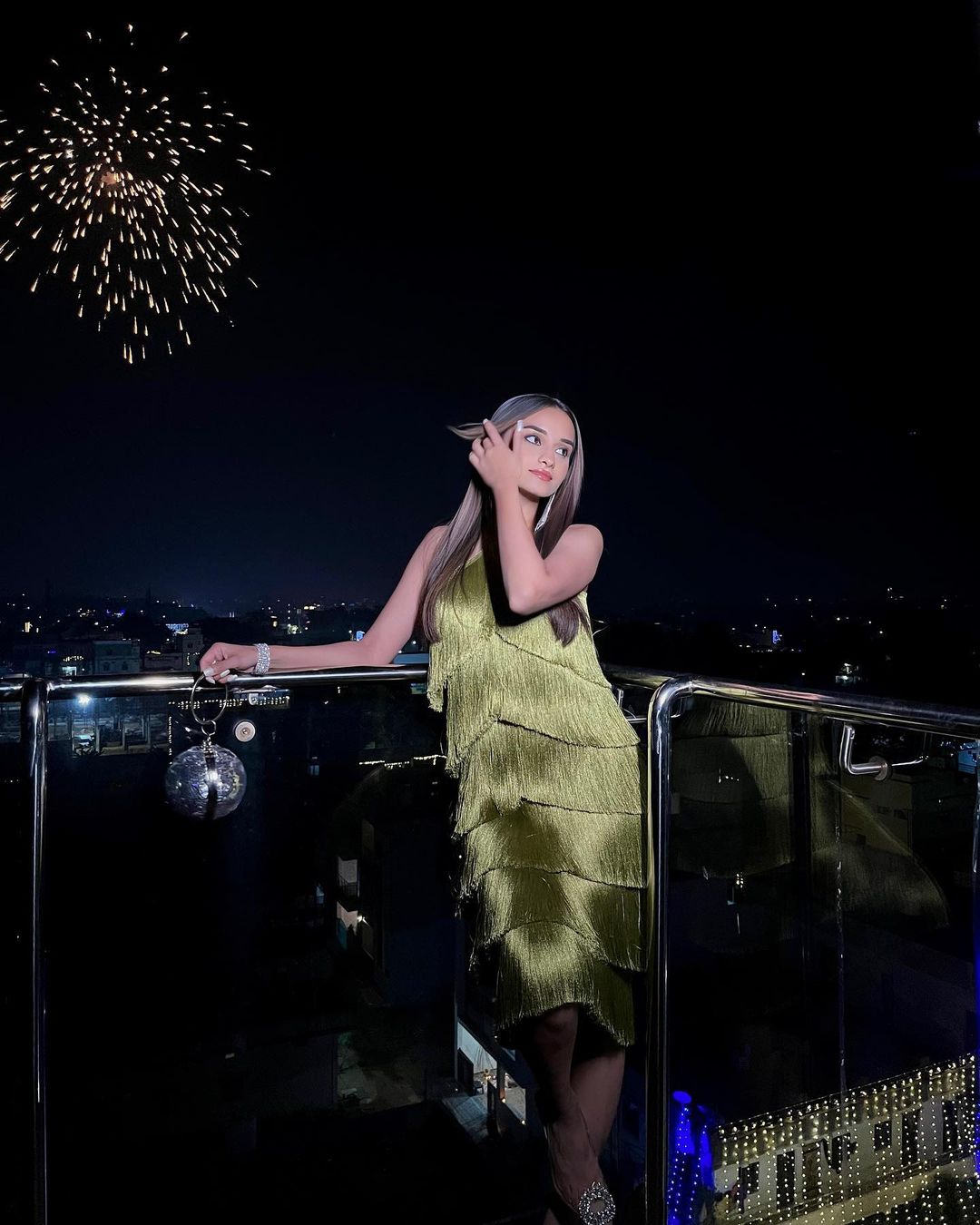 The rich olive-green hue of this dress is both versatile and captivating. It complements a variety of skin tones and brings a touch of natural beauty to your look. Whether it's a daytime event or a glamorous night out, this color radiates charm.
