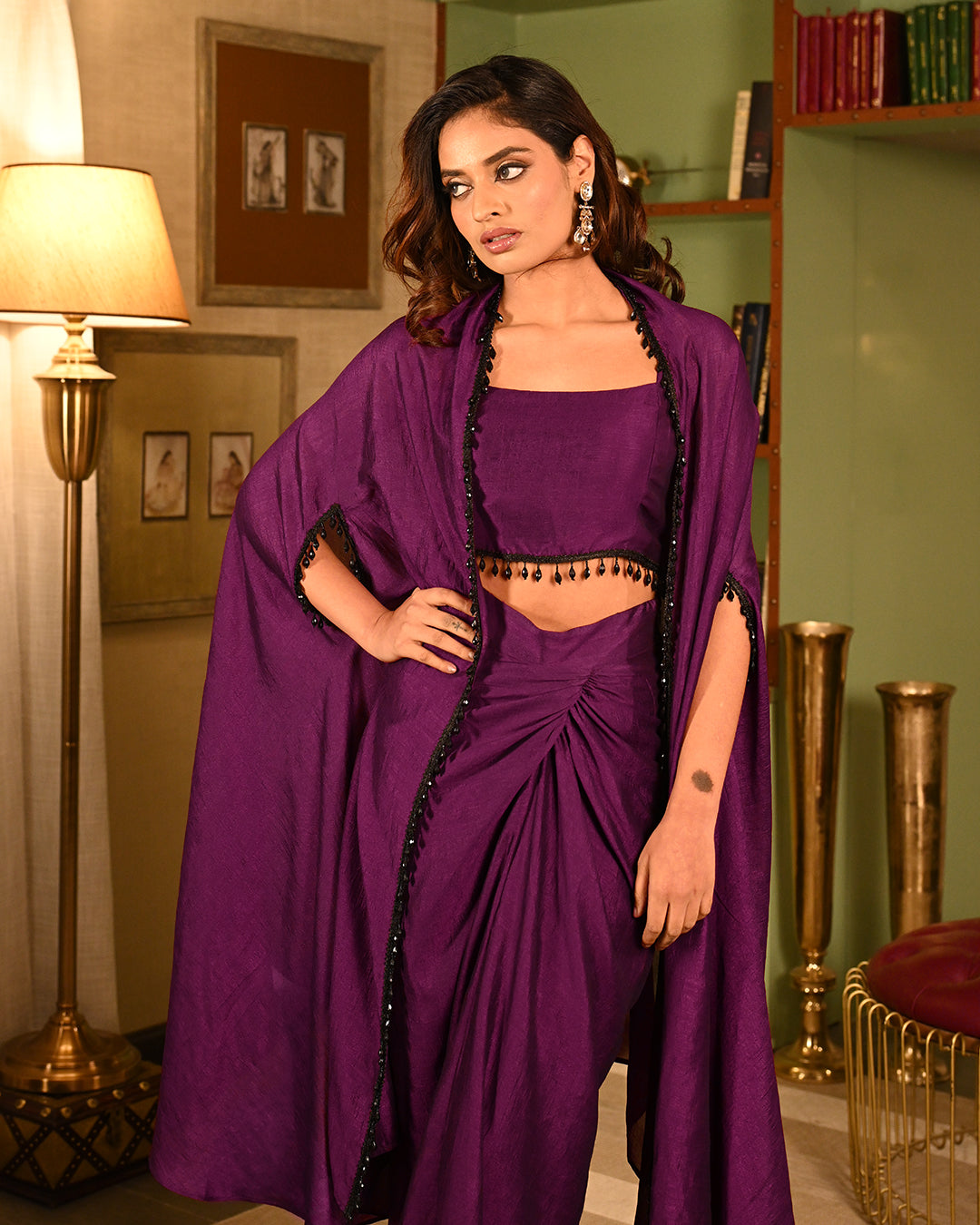 This stunning 3-piece co-ord set is the ultimate festive ensemble. Featuring a chic crop top with noodle straps, it beautifully highlights the collarbones and neckline. The flowing skirt adds an elegant touch, while the loose shrug, adorned with delicate lace, completes the look with a dash of festive flair. Perfect for any occasion, this set exudes effortless style. Pair it with a bold statement neckpiece or a stylish headband, and finish the look with a sleek clutch and heels. Whether attending a celebration or a special event, this co-ord set guarantees a head-turning appearance.