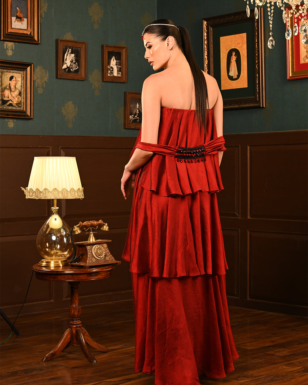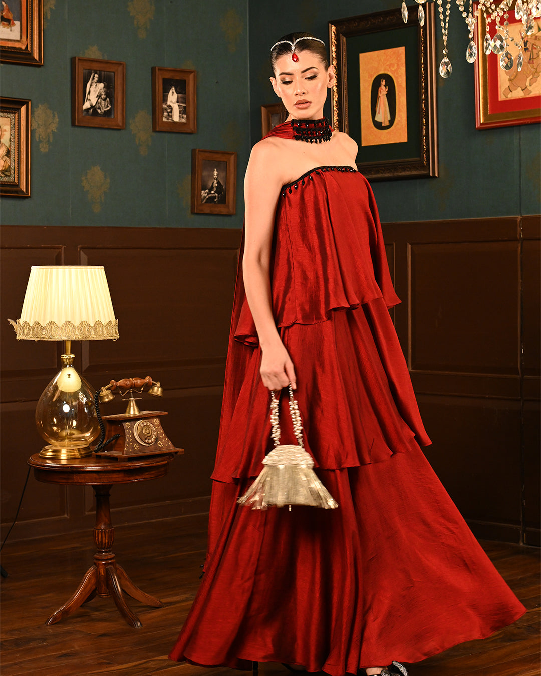 This frill dress offers an easy, breezy charm with a hint of ethnic elegance, perfect for festive moments. Featuring three-tier frills embellished with twinkling lace, the dress creates a flattering, flowy silhouette. The accompanying dupatta adds a touch of tradition, seamlessly blending modern comfort with festive appeal. Light, airy, and stylish, it’s the perfect choice for those who want to embrace glamour without sacrificing ease. Pair it with minimal accessories for a casual chic vibe or go bold for special occasions—this dress ensures you shine while staying effortlessly comfortable. Don't forget to carry a sparkly clutch to grab more attention !